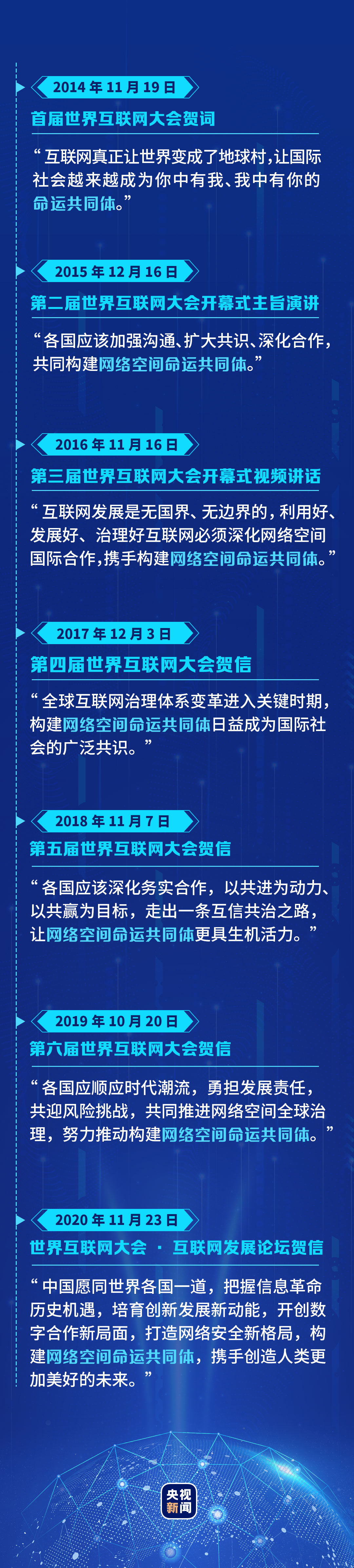 自首届世界互联网大会以来,习近平主席不断强调构建网络空间命运共同体——