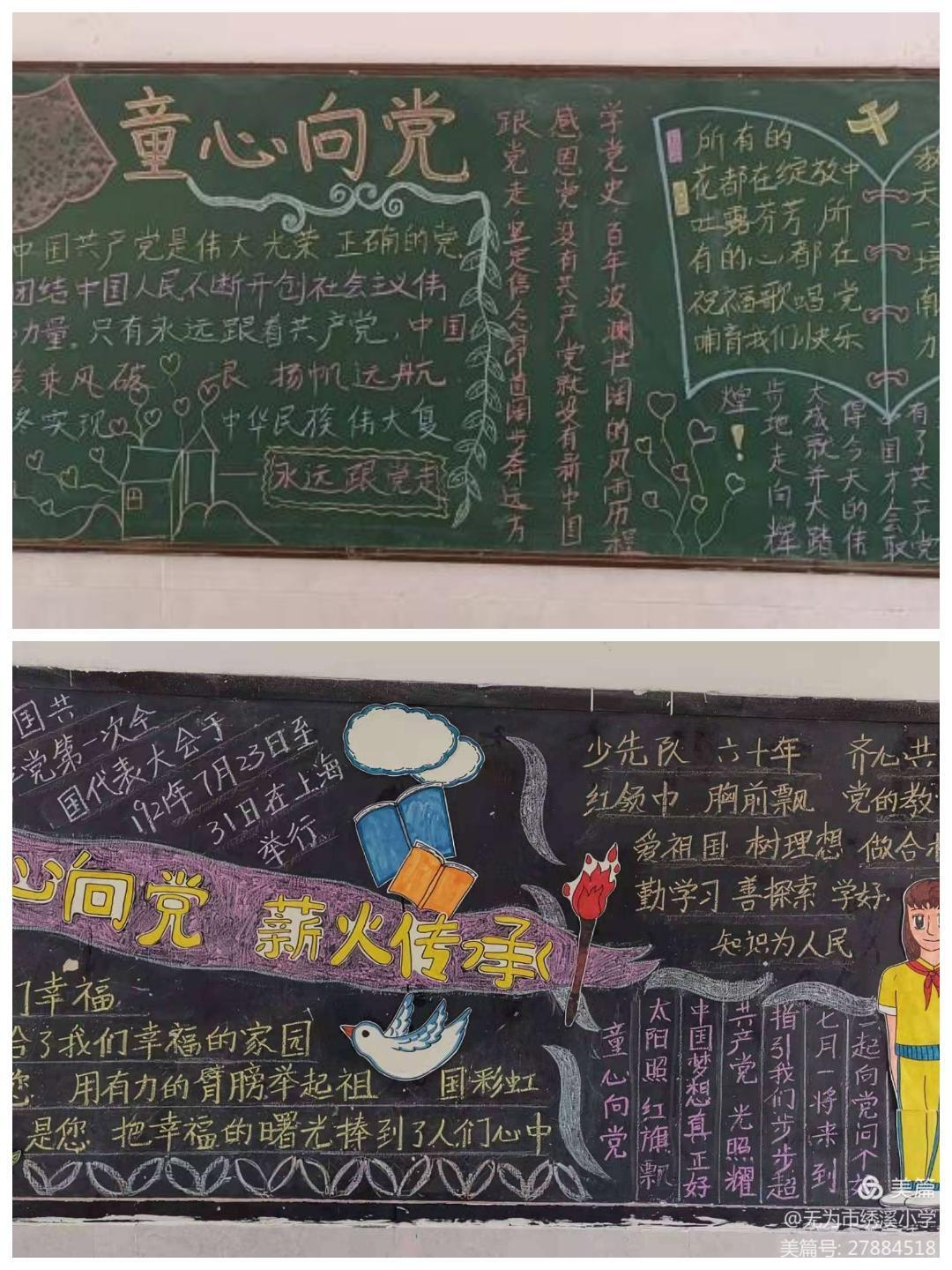 开展黑板报比赛。“童心向党,薪火传承”激发了少先队员们感党恩、听党话、跟党走,从我做起,立志报国的远大理想。