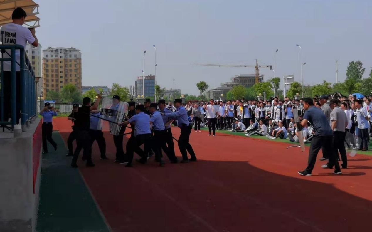 随后,警校携手,为先生们演出了一场校园反恐防暴应急演练。