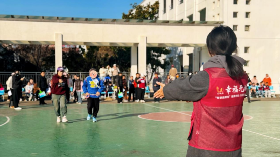 运动会现场社区工作人员、特教老师、志愿者与家长们组成 “爱心护航团”,全程陪伴孩子们参与活动。考虑到特殊儿童的身体与认知特点,本次运动会精心设计了“妨碍运球”“兴趣投篮”“亲子接力跑”“螃蟹快走”等多个低强度、高兴趣的项目,既考验孩子们的协调才能,又注重团队协作与亲子互动。