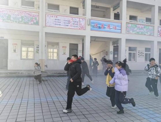 各楼层安全岗导护教师迅速就位,沉着指挥。各班先生在班主任的带领下,严厉按照应急预案要求,用湿毛巾捂住口鼻,弯腰低姿,沿着预定疏散路线,快速、有序地从教学楼撤离至学校操场的安全地带。