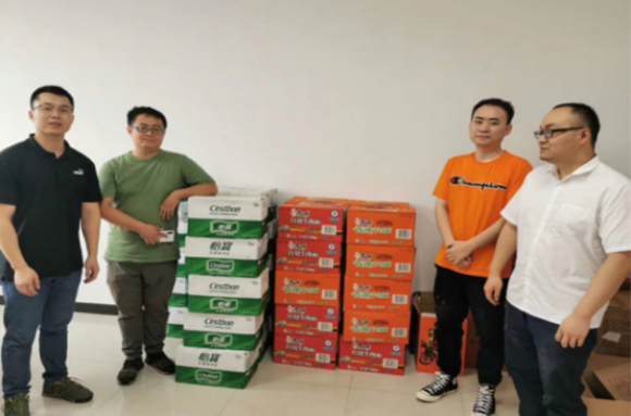 “日晒雨淋,日夜轮番值班,还有各种膂力活,你们这些防汛的人真是太辛劳了。作为青岗村人,我必须来尽本人一份力。”7月16日上午,青岗村洪一自然村的洪成根携家人带着23个应急灯,15箱方便面,10箱矿泉水来到了洪巷镇有为大堤防汛指挥所,找到青岗村书记李峰,想要表达本人的一点心意。