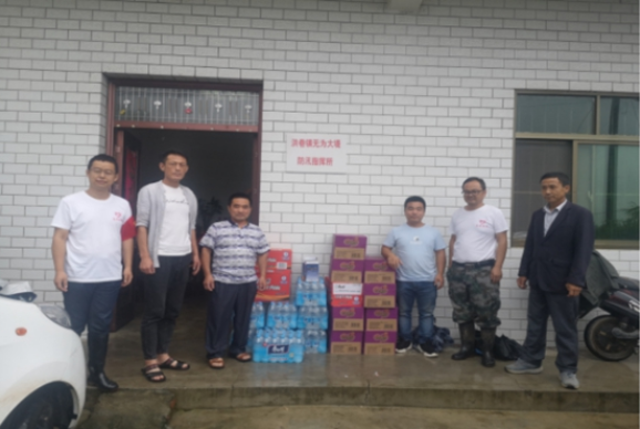 7月16日下午5点, 杭萧钢构(安徽)有限公司员工王其、芜湖我在送电子商务有限公司员工缪文超 、 芜湖北尚升辉财富酒店员工夏浩,三人来到洪巷镇镇政府、送来了20箱方便面、20箱矿泉水和200只手套,希望能经过捐赠物资为洪巷镇抗洪抢险工作贡献一份力量。在现场的党政办主任范成辉表示:这批物资将很快被送到抗洪救灾一线,暖和大家的心,坚定大家打赢这场防汛抢险硬战的决心!