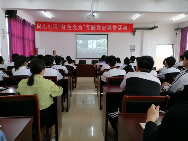 2021年,我们将迎来建党百年华诞。为推进党史学习教育深化人心,引导广大党员群众学史增信、学史崇德、学史力行,同时也在青少年一代中营建“学党史、颂党恩、跟党走”的良好氛围。5月7日下午,同心社区“红色有为”专题党史课堂活动在有为三中城北分校大礼堂进行。同心社区与辖区单位部分党员代表、三中在校先生共80余人参加了此次活动。
