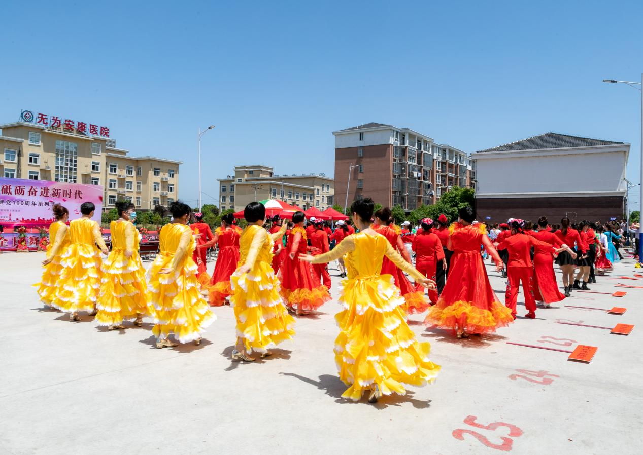 5月9日,有为市陡沟镇“全民舞动庆百年 砥砺奋进新时代”广场舞展演暨庆�建党100周年系列活动在华龙社区新时代文明理论广场繁华演出,来自周边的26支广场舞队伍同台竞技,用优美的舞姿、轻快的步伐,热情歌颂党的光辉历史,深情表达对党的有限酷爱。
