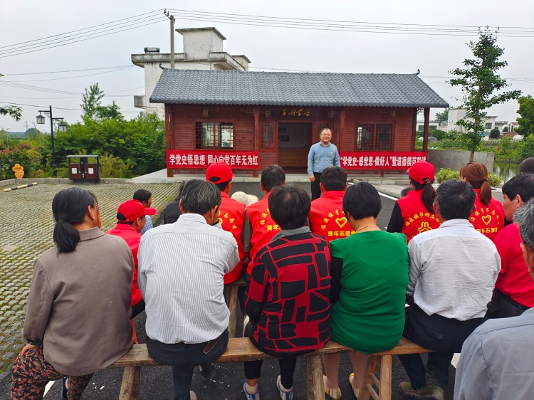 活动按照“道德讲堂”的六个环节即唱《三德歌》、学模范、谈感悟、诵经典、习礼仪、送吉祥环节有序进行,在学模范环节,宣讲人鲁丹丹宣讲了《濡须风云、永葆革命精神——王村的“晓庄师范”》的红色故事,声情并茂地回顾了王村学堂创办人金稚石先生追求革命、追求光明,为人民教育事业和解放事业作出杰出贡献的终身,号召大家学习金先生为人民无私奉献的精神。