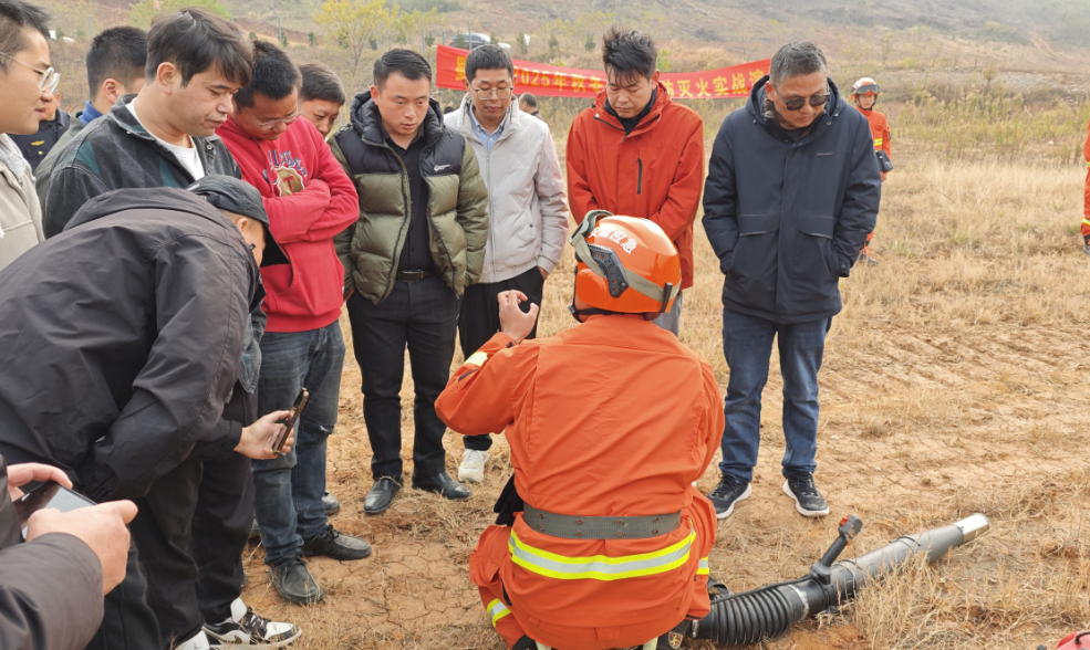 实战演练在湖东村山林模仿点进行,在指挥员详细讲解两种常用灭火机的正确用法后正式点火,模仿火情突发。参训人员按照训练方案分组进行,结合风向、风力、火势迅速灭火。最后,应急管理中心主任、石涧矿山救援队队长分别就此次实战演练作出评价并提出改进建议。