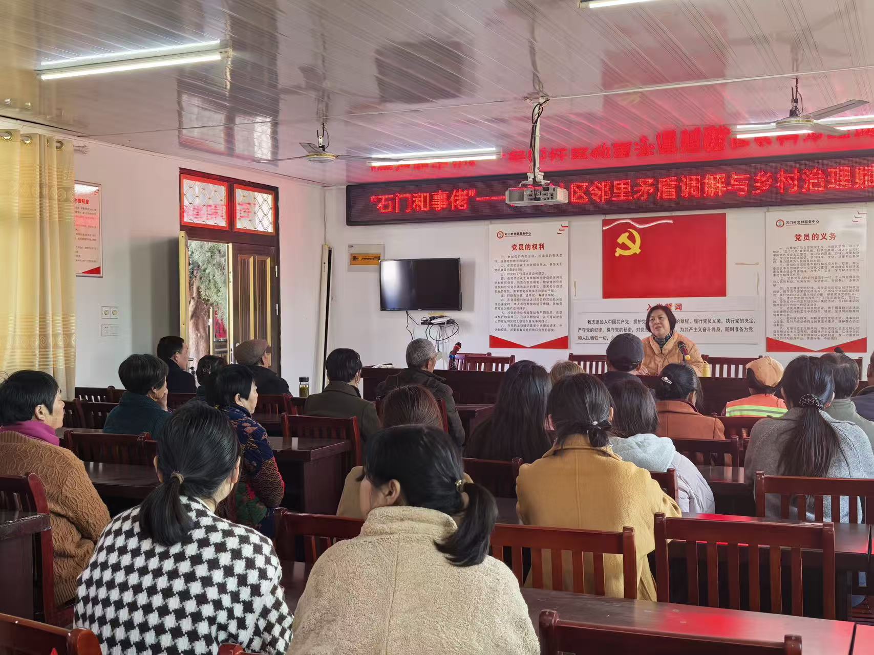 培训序幕,全体参与人员合影留念,齐声喊出“调解有方,共建和谐石门!”的培训口号,展现了社区调解队伍勾结二心、服务基层的精神风貌。