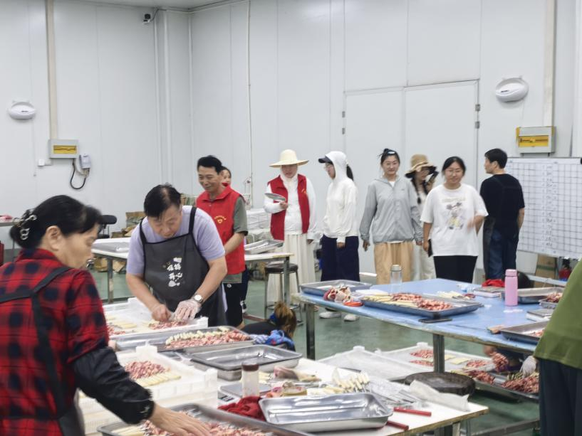 活动首站来到黄墩村新时代文明理论站。志愿者向同窗们详细引见了理论站的功能区域、活动开展状况以及包含的文明理念。离开理论站后,队伍前往禾森食品有限公司。走进公司消费车间,干净整洁的环境和有序的消费流程让同窗们眼前一亮。公司担任人热情地向同窗们引见了食品消费的原料选择、加工工艺以及质量检测等环节,还现场展现了部分产品的制造过程。