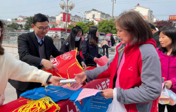 ¹¤×÷ÈËÔ±ÏòȺÖÚ·Ö·¢Ðû´«µ¥Ò³