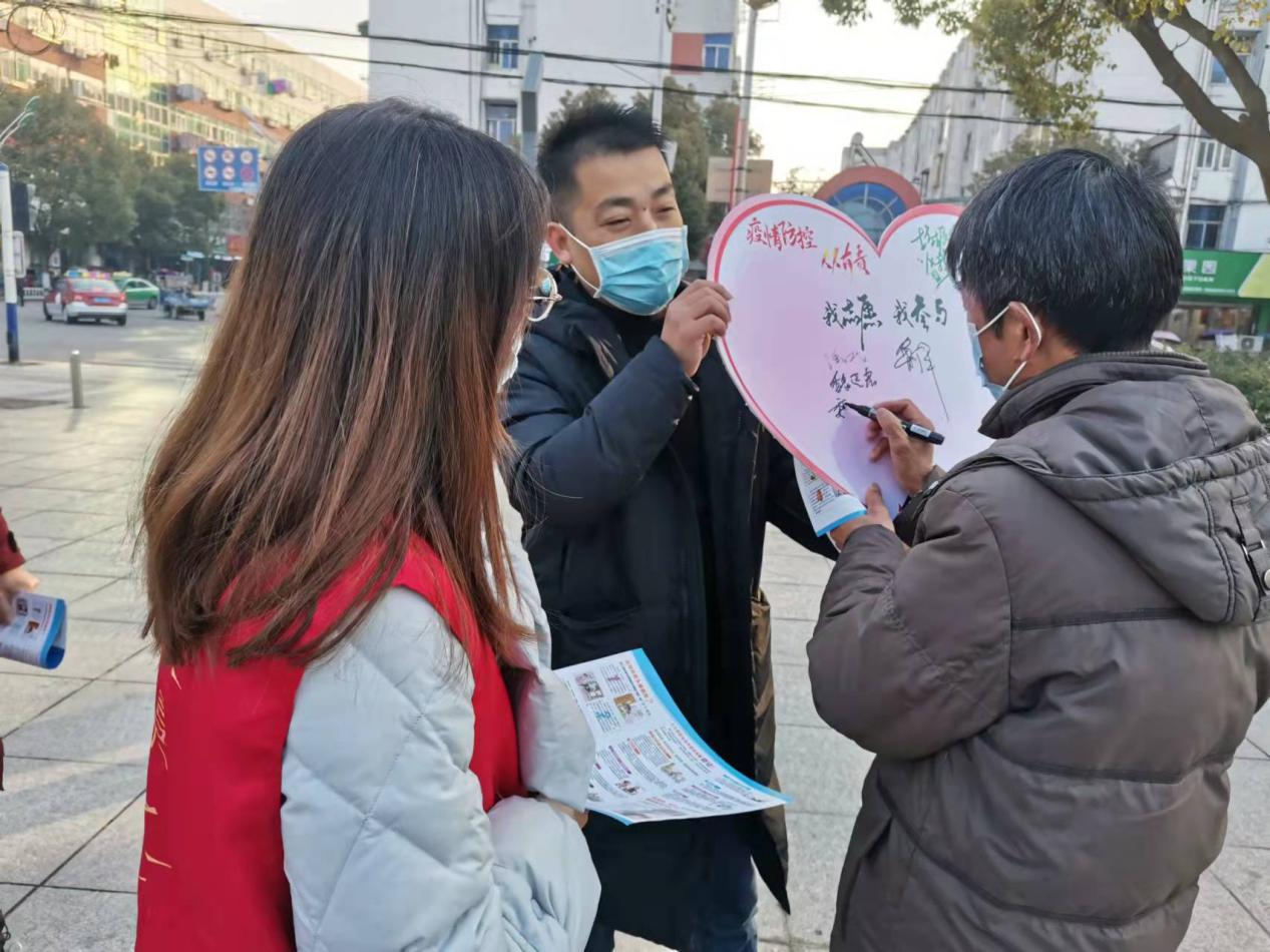 活动过程中,党员志愿者们发挥模范作用,向过往居民分发疫情防控倡议册。疫情防控人人有责,当前疫情防控情势再度面临严峻应战,春节假期临近,人员流动添加,“外防输入,内防输入”尤为重要。同时志愿者们倡导居民在两节时期做好疫情防护措施,齐心协力共度佳节。