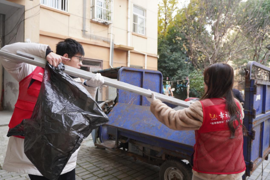 大家按照提早划分好的区域,迅速投入清算工作当中。同心三期里有一户居民,长期积累了废旧家具、塑料袋、落叶以及各种建筑垃圾等。志愿者们充分发挥不怕脏、不怕累的精神,有的弯下身子用手捡起隐藏在草丛中的烟头、纸屑;有的两人一组,合力抬走废弃的床垫、桌椅等大件垃圾;还有的拿着铲子,细心铲除墙壁上、地面上的顽固污渍和小广告。卫生健康委的专业工作人员还不忘一边清算,一边向居民普及环境卫生与健康生活的相关知识,提示大家要养成良好的卫生习气,共同维护小区的整洁。