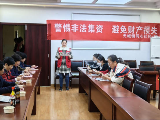 ¡¡¡¡11ÔÂ7ÈÕ£¬ÎÞ³ÇÕòͬÐÄÉçÇøÔÚ¶þÂ¥»áÒéÊÒ¿ªÕ¹ÁË¡°¾¯Ìè·Ç·¨¼¯×Ê¡¡±ÜÃâ²Æ²úËðʧ¡±Ðû´«»î¶¯¡£