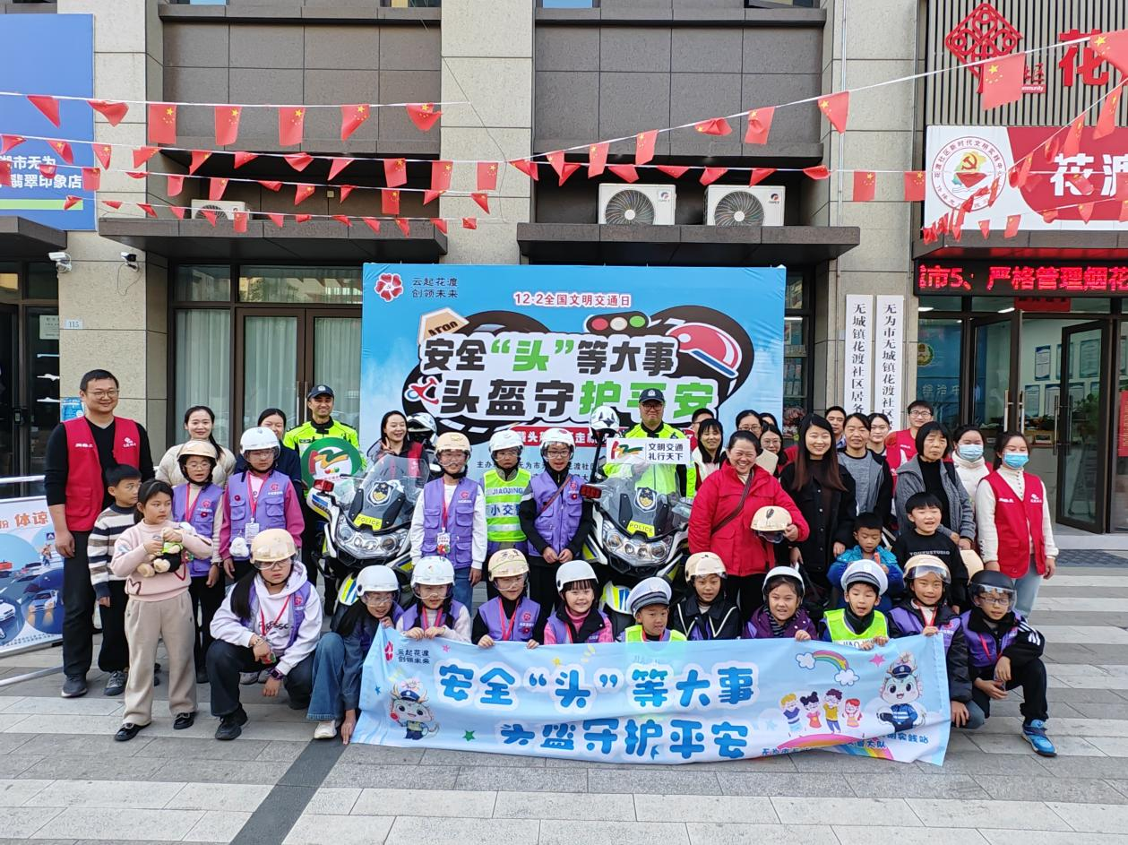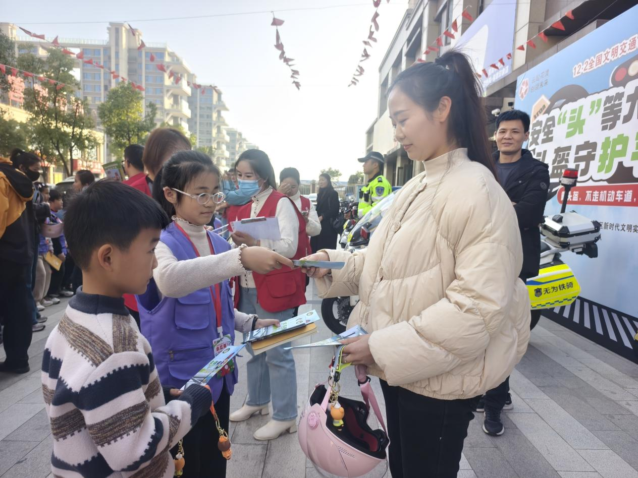 11月30日下午,花渡社区联合有为交管大队开展“安全‘头’等大事 头盔守护安全”主题头盔安全宣传举动,20名小红花记者团成员与家长、交警、社区工作人员携手,以多元方式播撒交通安全种子。