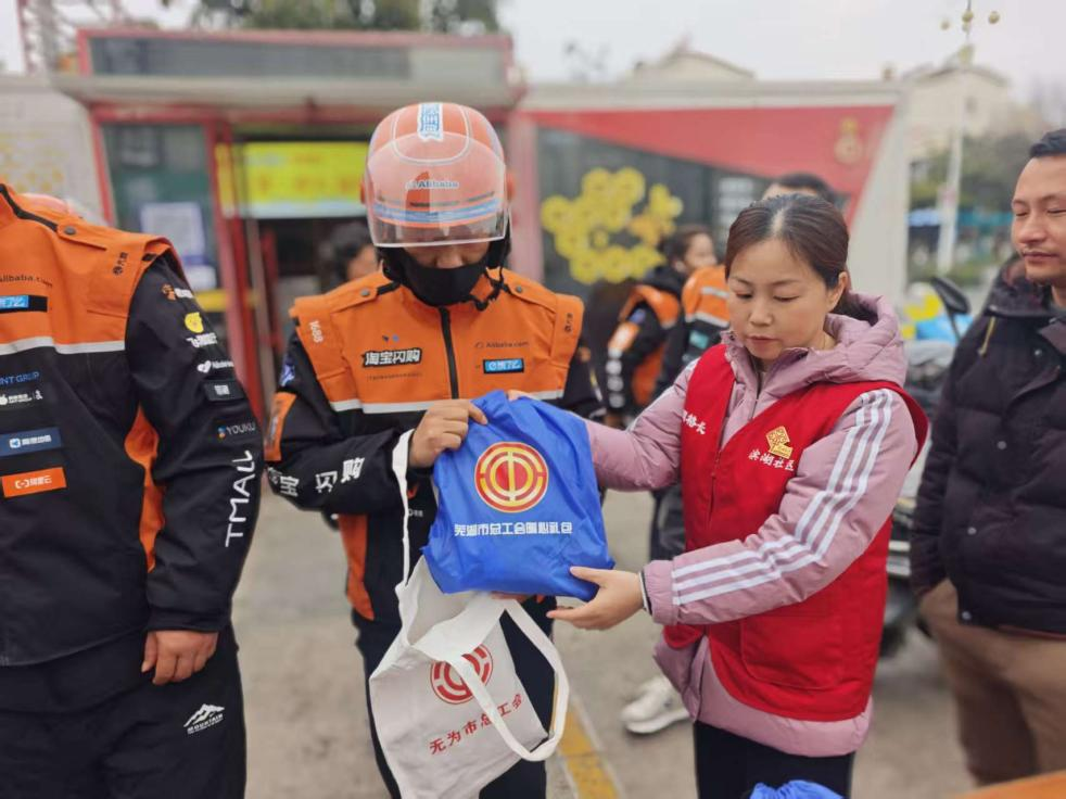 12月10日上午,滨湖社区携手市工会开展“暖冬礼包传关爱 滨湖温情伴‘新’行”主题活动,为快递员、外卖骑手等两新群体送上精心预备的暖心礼包,让奔波在一线的城市劳动者感遭到冬日里的关怀与暖和。