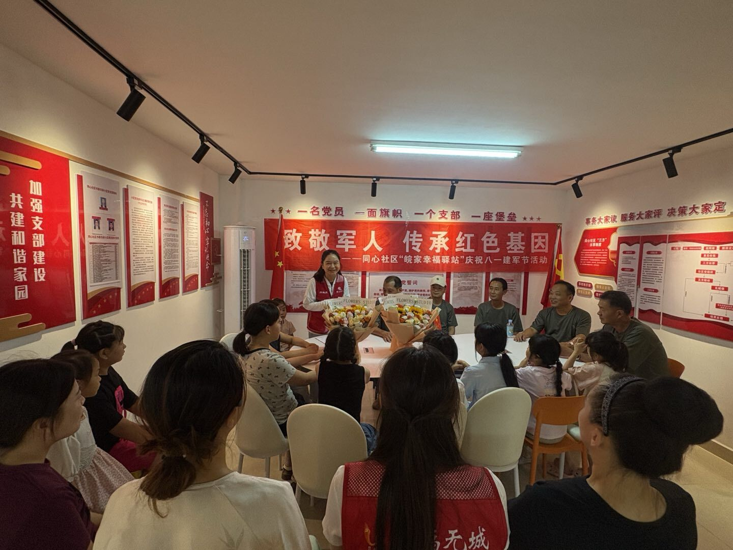 近日,同心社区书香华府党群活动站内歌声嘹亮、笑语盈盈,“同心童梦童行——致敬军人,传承红色基因”八一建军节主题活动在此繁华举行。本次活动以“致敬军人,传承红色基因”为核心,吸引了辖区内众多家庭参与。