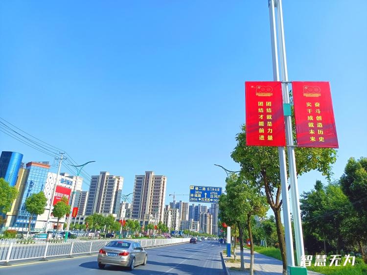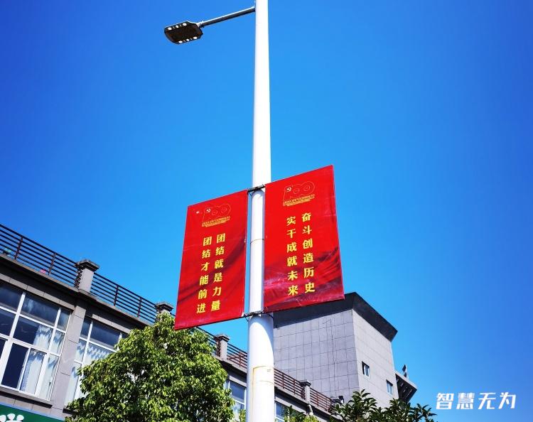 行走在大街上,映入视野的是或点缀在绿树丛中,或顶风傲立在路灯杆上的道旗,每幅道旗底色均为红旗色,最下面是庆�中国共产党成立100周年标志,下面是金色标语,全体庄严重方。这是有为市城管局结合党史学习教育,创新举措,扮靓城市,营建欢乐祥和的节日氛围,喜迎中国共产党成立100周年。