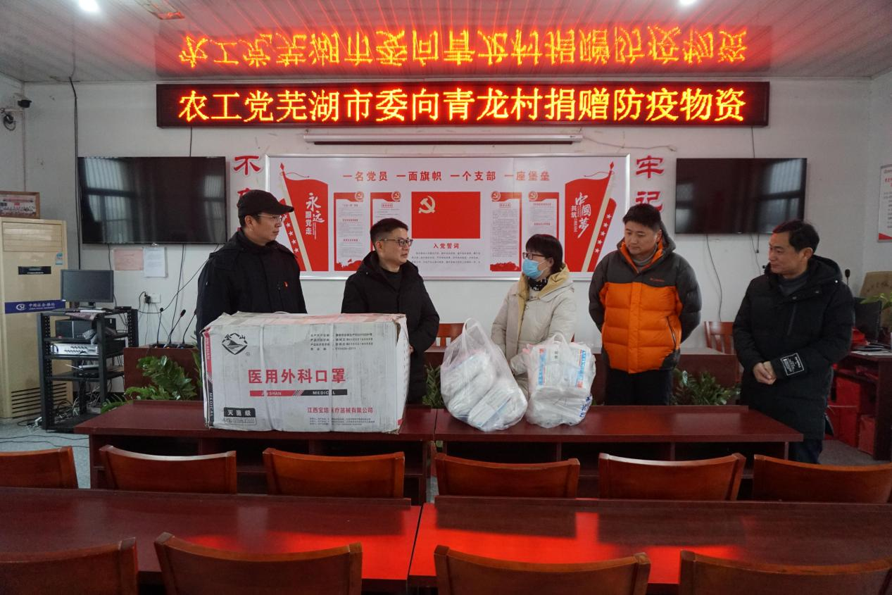 2022年春节即将来临,青龙村大量在外人员集中返乡,给村疫情防控工作带来较大压力。2022年1月25日上午,农工党芜湖市委专职副主委汪金龙带队向青龙村赠送5000只医用口罩,助力青龙村疫情防控工作。驻村工作队队长、村第一书记周澄清向农工党多次支持青龙村疫情防控工作表示感激。