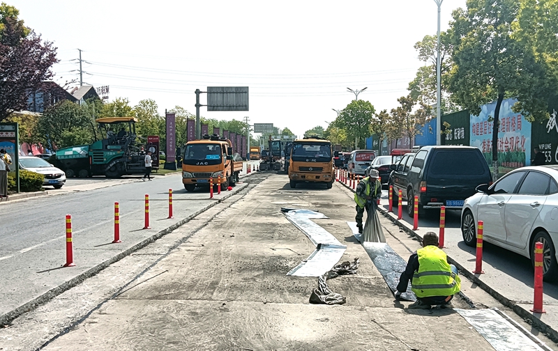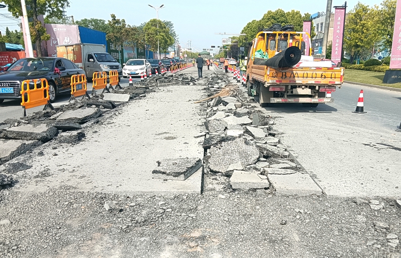 市城管局在进行多次实地调研的状况下,提早谋划,及时组织工程技术人员进行勘查测算,制定维修方案,于4月15日至16日,利用晴好天气,集中力量,将原10厘米破损沥青路面铣刨后,组织养护工人对裂缝处加装防裂贴、钢丝格栅进行补强,之后摊铺沥青路面。