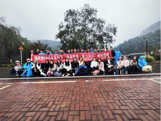 途中,雾气时而漫过肩头,将远处的山峦晕成淡淡的水墨轮廓,职工们却得空过多欣赏眼前的景致,反而更注重彼此间的帮扶——遇到较陡的路段,走在后方的人会伸手拉一把身后的同事;有人脚步稍缓,身边便会传来“慢慢来,我们等你”的鼓励。大家聊着工作中的趣事,也借着“登高敬贤”的主题,分享着身边榜样敬业奉献的故事,雨水打湿了衣角,却让团队的凝聚力在并肩前行中愈发浓重。历经一个多小时的攀爬,全体职工顺利抵达山顶。此刻雨雾照旧缭绕,站在观景台远眺,云雾在山间流动,仿佛将一切的疲惫都悄然拂去。大家纷纷合影留念,脸上的愁容在雨雾中格外灿烂。