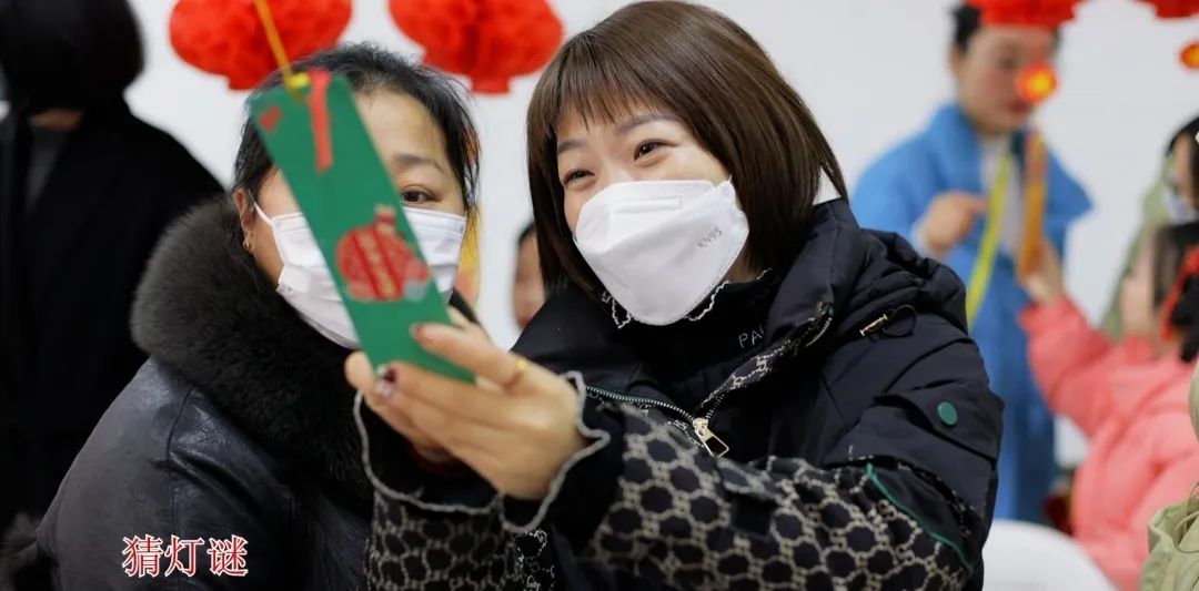 另一边火红的灯谜灯笼高高悬挂,妙趣横生。五彩绚丽的谜条飘扬在文体活动室内,高高悬挂,大家或三五成群结伴猜谜,或独自苦思冥想,不时传出一阵阵开心的笑声,共同体验灯谜带来的乐趣,处处弥漫着浓浓的文明气息。