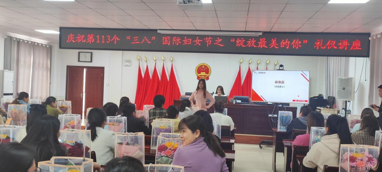 3月6日下午,为庆�第113个“三八”国际妇女节,福渡镇特约请芜湖春彩教育科技有限公司董事长、安徽省“巾帼建功标兵”汪旺娣女士为各位女同胞们开展了一场主题为“绽放最美的你”的礼仪讲座,现场氛围活跃、互动频频。