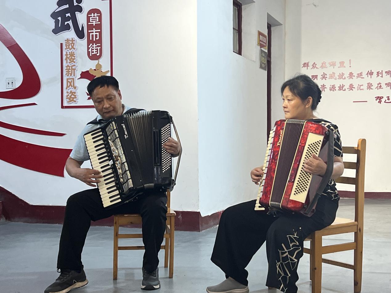 见现场氛围甚好,一些社区居民带着本人排演好的节目,自告奋勇为大家献上一支优美的手风琴表演曲目。掌管人也鼓励现场的老人小孩,都可以下台一展才艺。很好地拉近了邻里之间的距离。