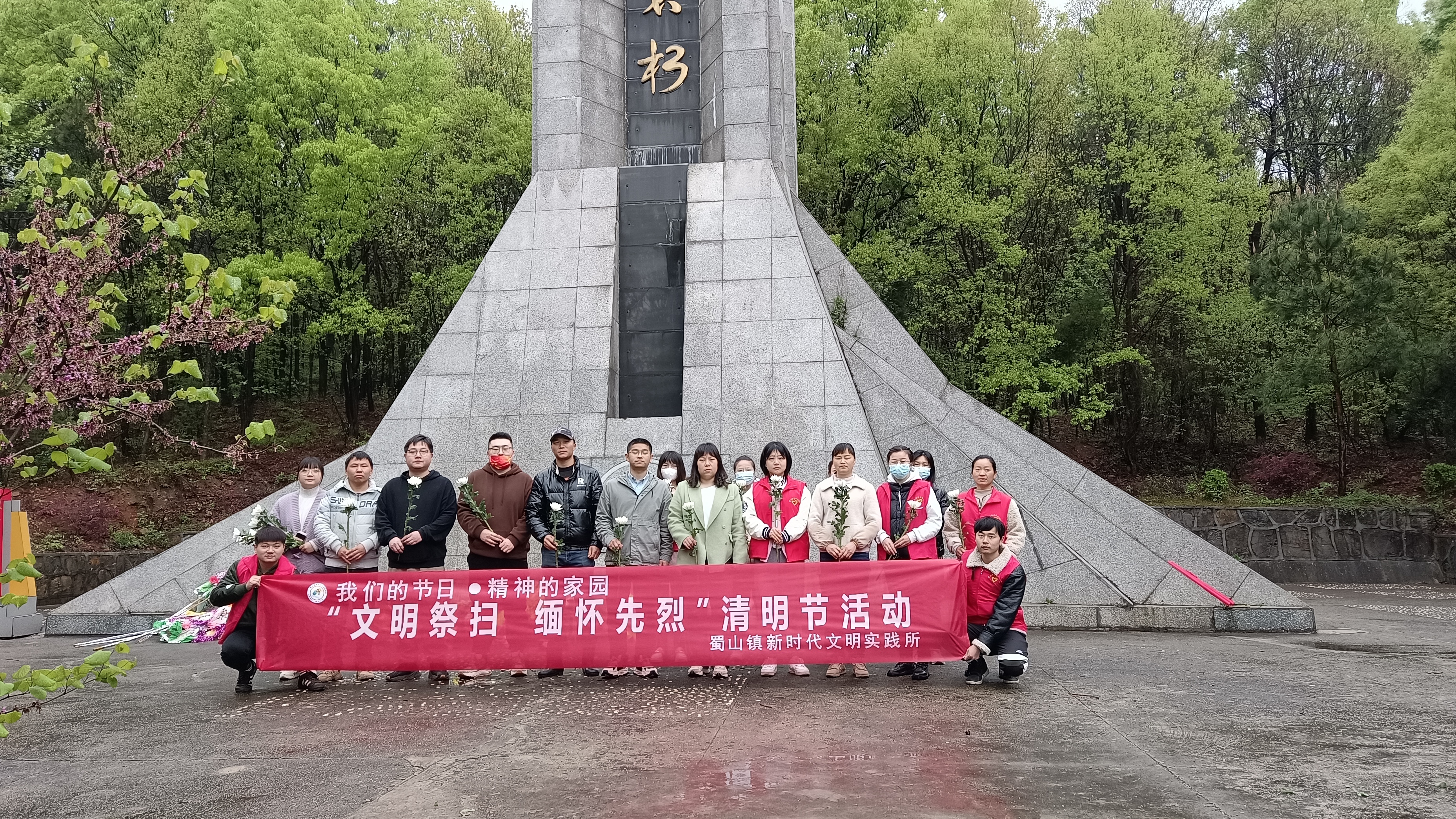 又到清明泽雨时,素花一捧满追思。为缅怀和悼念革命烈士,重温光辉历史,4月4日上午,蜀山镇新时代文明理论所组织在三尖山爱国主义教育基地开展“我们的节日·精神的家园——文明祭扫 缅怀先烈”清明节活动。蜀山镇新时代文明理论所志愿者、部分机关干部、村(社区)代表参加活动。