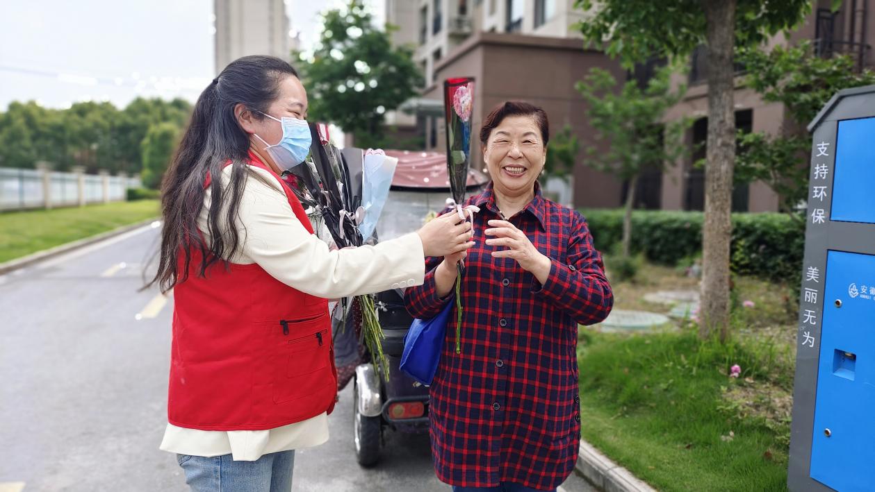 妈妈笑了,花都开了!美丽的鲜花分发着阵阵幽香,犹如母亲深沉的爱。社区开展的母亲节送花活动,既弘扬了“尊重母亲、感恩母亲”的优秀中华美德,又营建了积极向上的和谐氛围和有温度的社区服务空间。(张雅君)