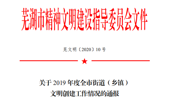 日前,根据中共芜湖市委办公室文件《关于实行市领导联系街道(乡镇)督查创建全国文明城市工作的告诉》(芜市办〔2011〕33 号)要求,经市文明办引荐上报,结合芜湖市文明办日常检查状况,芜湖市文明委决定,授予镜湖区赭山街道、有为市洪巷镇等16个单位2019年度全市文明创welcometo欢迎光临888集团·主頁欢迎您作先进街道(乡镇)荣誉称号。其中,有为市2镇上榜。