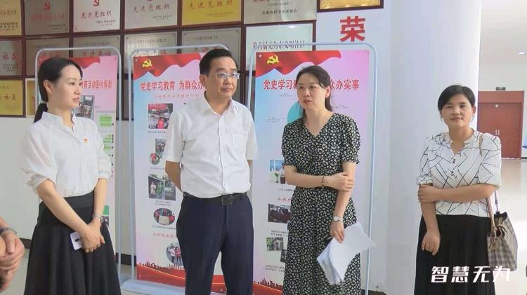 在无城镇滨湖社区服务中心,吴瑞新一行边走边看,详细了解了社区流动党员党史学习教育开展的怎样样,“我为群众办实事”理论活动成效如何,党员群众的参与程度如何。在了解到该社区经过邮寄“学习包”、开设“云课堂”“指尖课堂”等方式,确保流动党员“离乡不离党、流动不流学”后,吴瑞新给予了肯定。他指出,滨湖社区党史学习教育工作有内容、有特点、有成效,要进一步总结经验、提炼做法,争做全市基层社区党史学习教育的标杆。