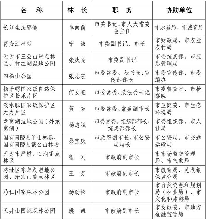 重点生态功能区市级林长分工方案
