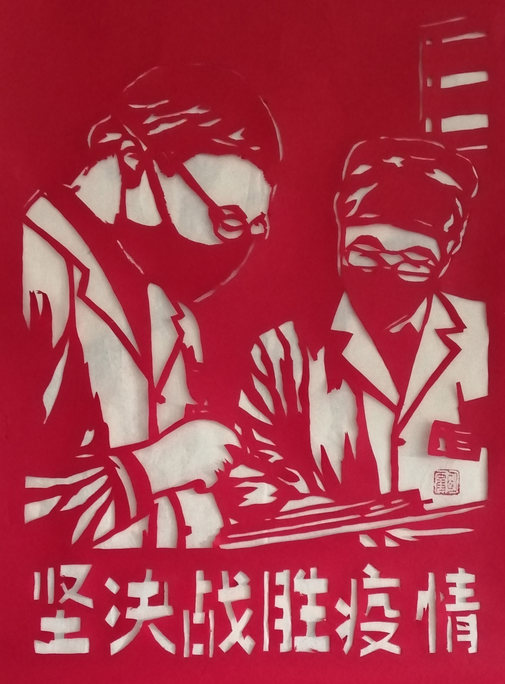 张明霞 《坚决打败疫情》剪纸