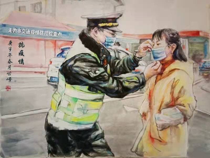 马世峰 《抗疫情》中国画