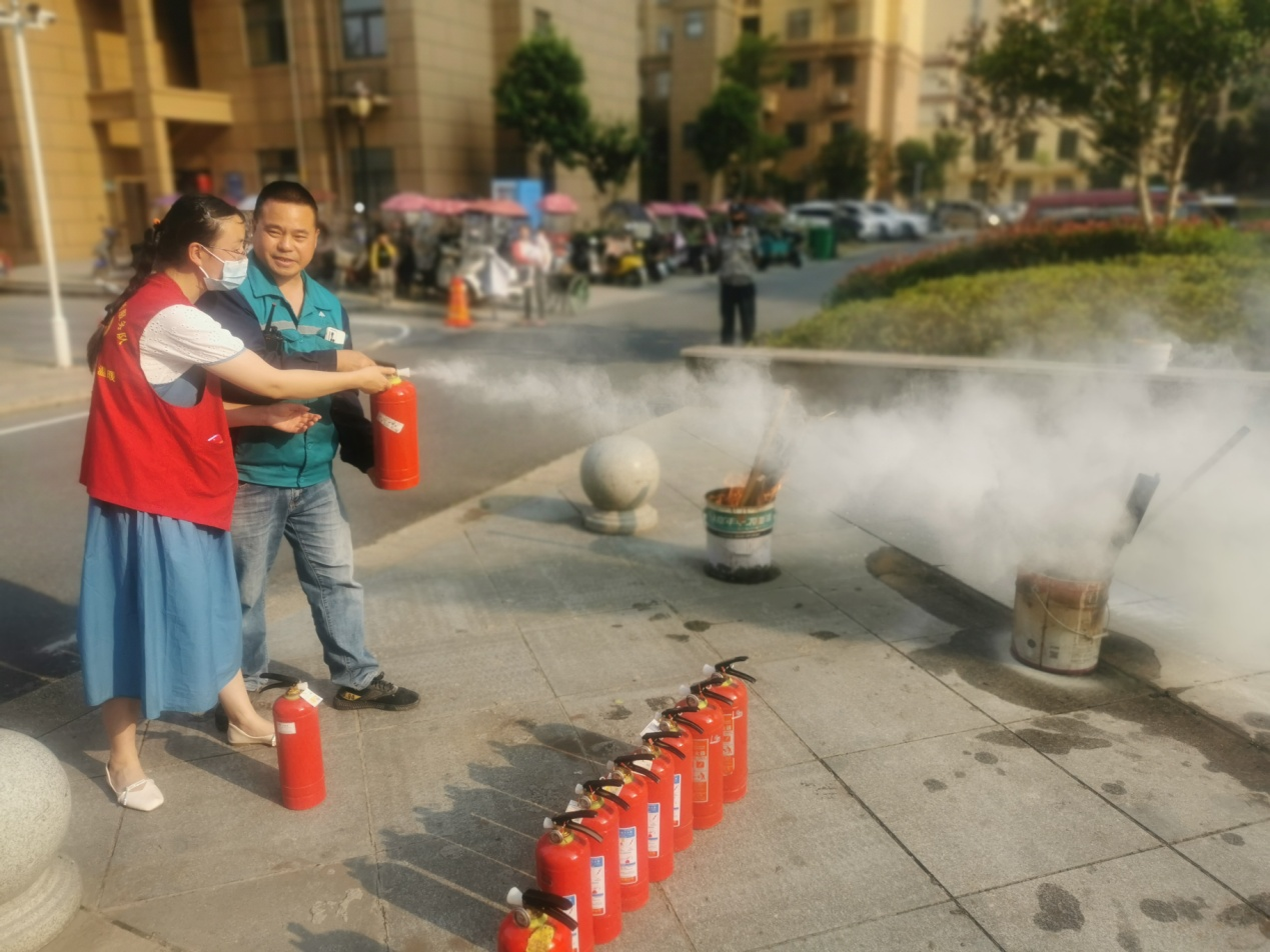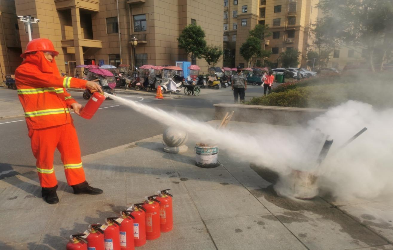 演习开始前,物业应急救援队队长向居民代表、物业人员及社区工作人员讲解了消防知识和灭火器运用方法、分解动作以及留意事项。要求大家仔细学习,动手操作,真正掌握扑救火情的技能。然后手持灭火器现场实战演示了灭火技巧与要领。随后,社区工作人员、志愿者、物业人员以及居民代表纷纷积极上场尝试运用干粉灭火器灭火。