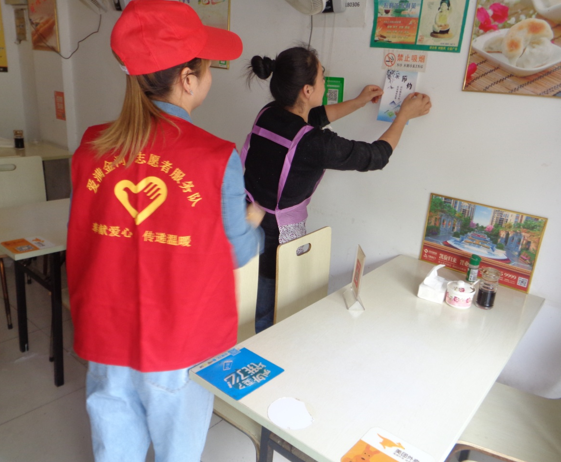 活动中,新时代文明理论站志愿者走进小区、沿街饭店、超市,向居民和商家推行简约过度、文明绿色的餐饮理念和生活方式,号召辖区居民节约每一粒粮食,同时在商家店铺张贴“文明餐桌 处理粮食”的宣传海报,引导广大居民群众节约粮食、抵制浪费,为创建节约型社会贡献本人应有的力量。