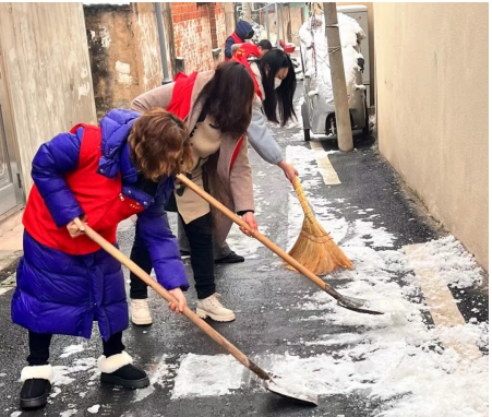 一场大雪给城市披上了一层银装。但是,这场雪也给我们的生活带来了一些不便。特别是在背街小巷,积雪和冰冻给居民的出行带来了很大的安全隐患。为了处理这一成绩,五华社区积极组织志愿者为辖区背街小巷清积雪扫妨碍,为居民营建一个安全、整洁的出行环境。