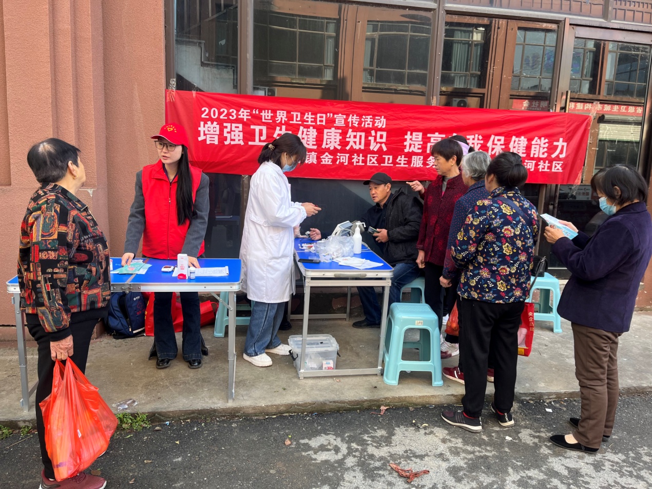 4月7日是世界卫生日,为惹起广大居民群众对卫生健康工作的关注,进步居民的健康程度,无城镇金河社区组织志愿者在辖区内开展“加强卫生健康知识 进步自我保健才能”宣传义诊活动主题活动,
