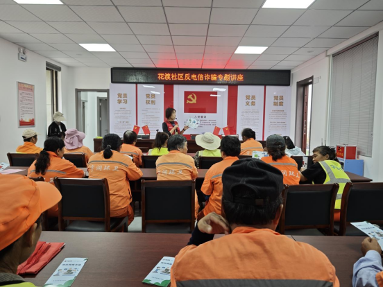 近日,花渡社区组织开展了以“反诈课堂‘不出席’,社区安全‘不打烊’”为主题的反诈宣传活动。社区工作人员经过开设反诈课堂、发放宣传传单等方式,向居民们普及反诈知识,守护群众的“钱袋子”。