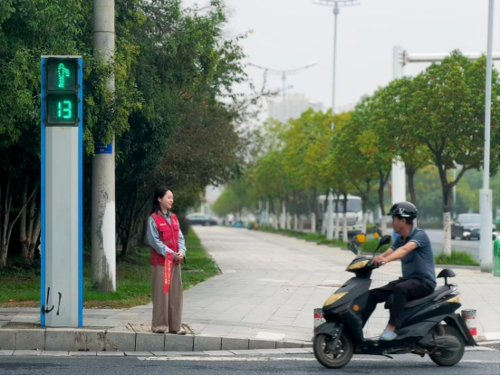 在辖区交通路口,双桥社区的志愿者们身着红色志愿马甲,化身文明交通“引导员”。他们手持文明引导旗,耐心提示非机动车驾乘人员佩戴安全头盔、恪守交通讯号;面对行人,他们热情解答路况疑问,宣传文明出行知识,让文明交通的理念在每一次互动中传递。