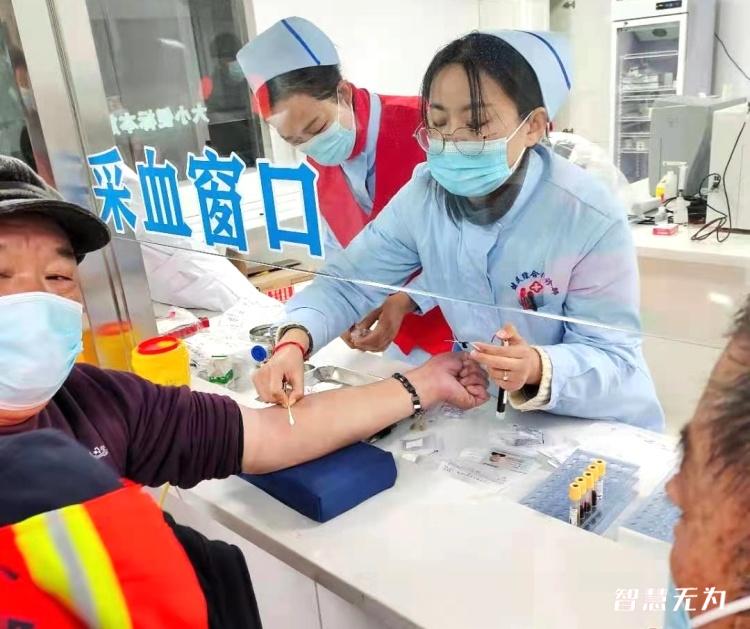 在接受慰劳之前,健民综合门诊部为环卫工人们进行了抽血化验等免费体检。
