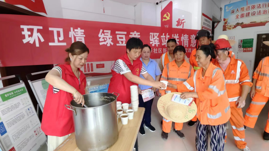“环卫情,绿豆意,驿站送心意”7月25日下午,五华社区新时代文明理论站用实践举动为环卫工人在炎炎酷暑送去一份清凉与温情。