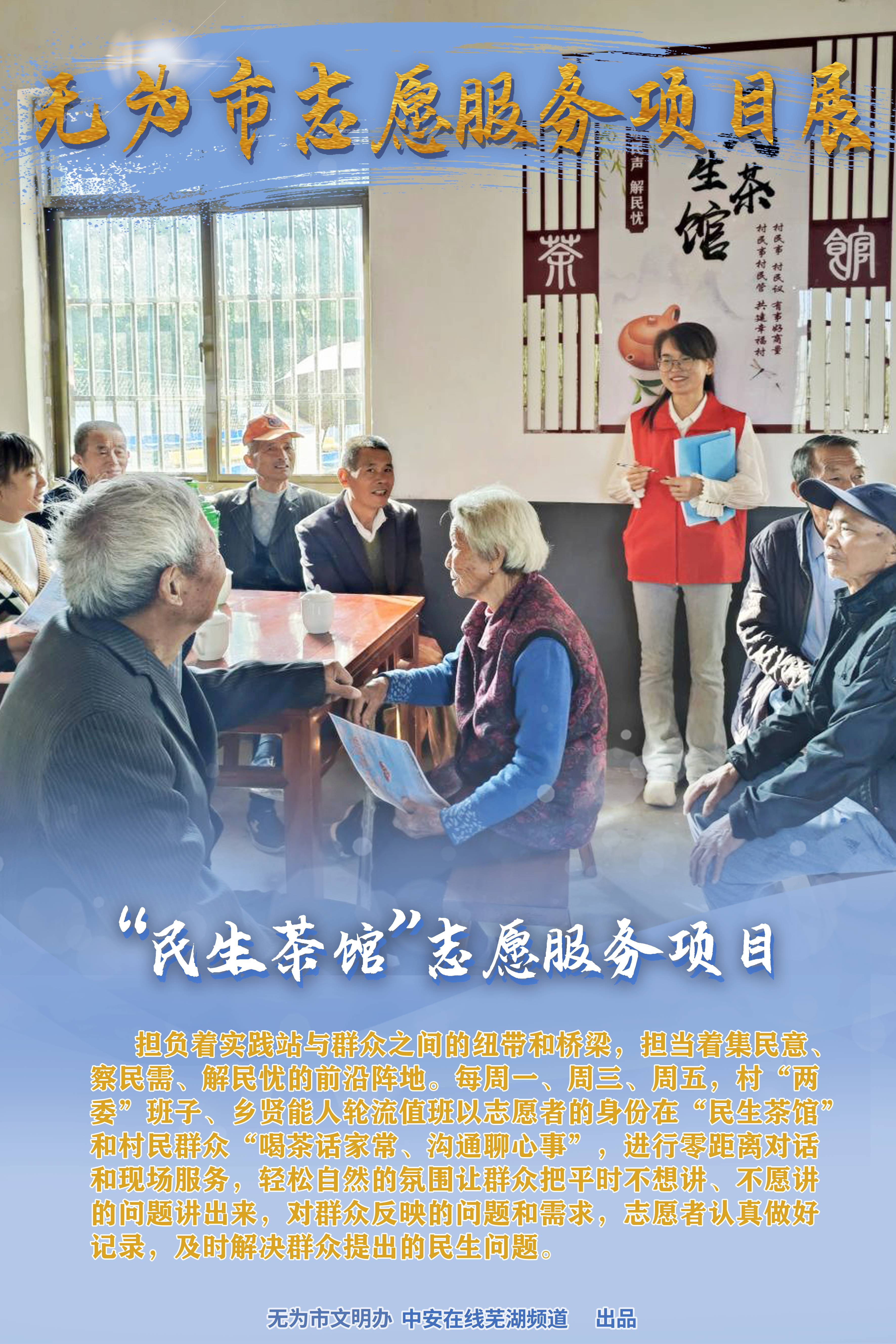 ¡¡¡¡µ£¸º×ÅÀíÂÛÕ¾ÓëȺÖÚÖ®¼äµÄŦ´øºÍÇÅÁº£¬µ£µ±×ż¯ÃñÒâ¡¢²ìÃñÐè¡¢½âÃñÓǵÄÇ°ÑØÕ󵨡£Ã¿ÖÜÒ»¡¢ÖÜÈý¡¢ÖÜÎ壬´å¡°Á½Î¯¡±°à×Ó¡¢ÏçÏÍÄÜÈËÂÖ·¬Öµ°àÒÔÖ¾Ô¸ÕßµÄÉí·ÝÔÚ¡°ÃñÉú²è¹Ý¡±ºÍ´åÃñȺÖÚ¡°ºÈ²è»°¼Ò³£¡¢¹µÍ¨ÁÄÐÄÊ¡±£¬½øÐÐÁã¾àÀë¶Ô»°ºÍÏÖ³¡·þÎñ£¬ÇáËÉ×ÔÈ»µÄ·ÕΧÈÃȺÖÚ°ÑÍù³£²»Ïë½²¡¢²»Ô¸½²µÄ³É¼¨½²³öÀ´£¬¶ÔȺÖÚ·´Ó³µÄ³É¼¨ºÍÐèÇó£¬Ö¾Ô¸Õß×Ðϸ×öºÃ¼Ç¼£¬¼°Ê±´¦ÀíȺÖÚÌá³öµÄÃñÉú³É¼¨¡£