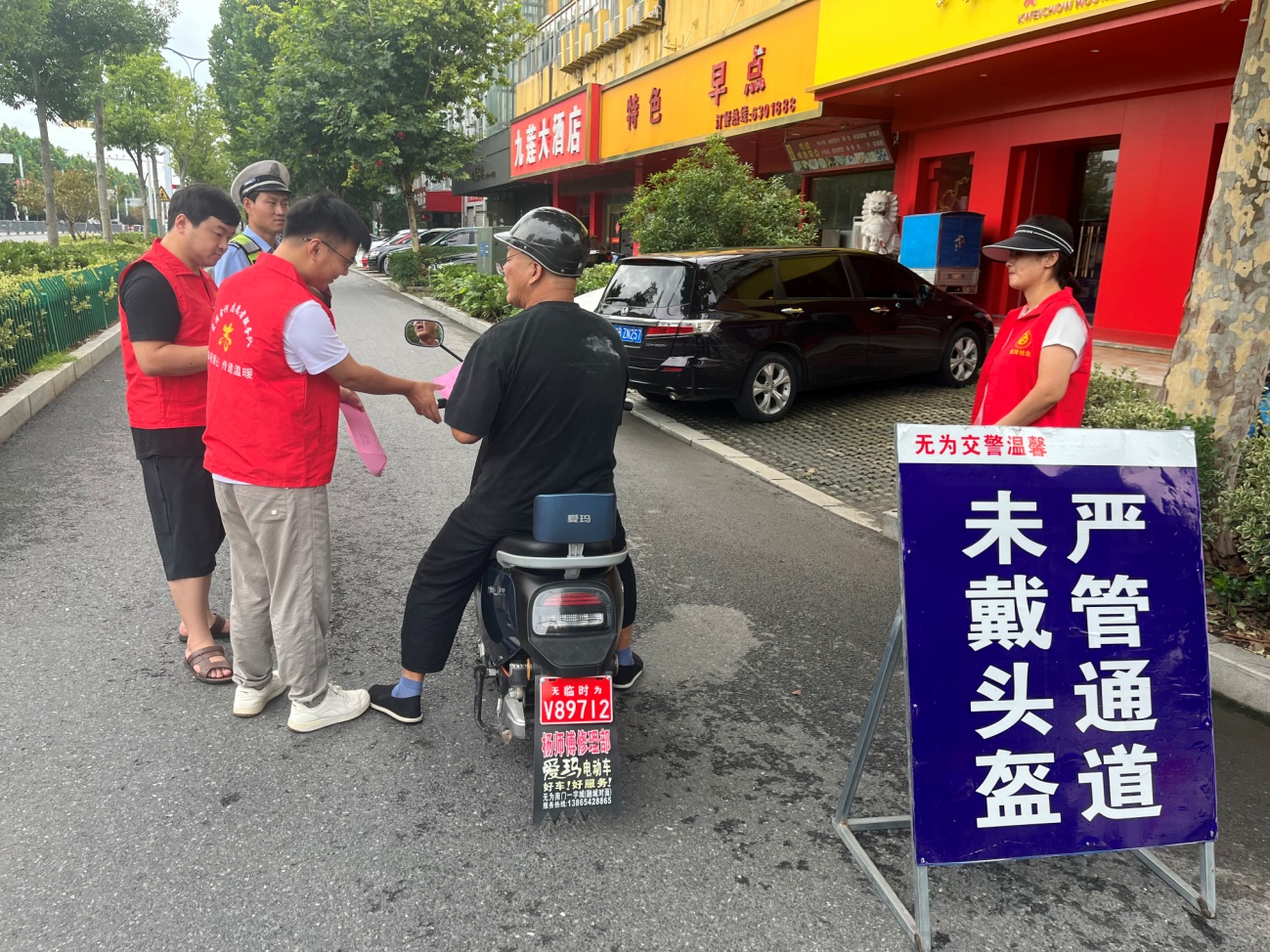 ¡¡¡¡ÉçÇøÖ¾Ô¸ÕßÌáʾ¾ÓÃñÆïµç¶¯³µÒ»¶¨Òª´÷Í·¿ø