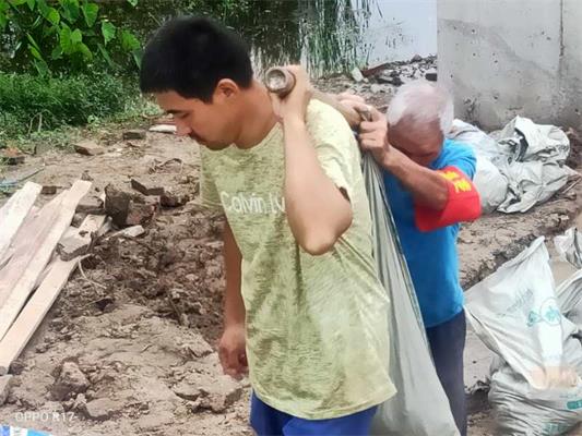 安徽省有为市今年的梅旱季节来临曾经有40多天了,远超正常工夫,一个多月绵延不绝的雨水,让姚沟镇防汛压力变得异常巨大,其中姚沟社区的闷湖自然村面临着破圩的风险局面,因此急切需求人手加固闷湖子堤,就在人手不足的状况下,一对特殊的父子自动请缨,他们就是肖尚兵父子。