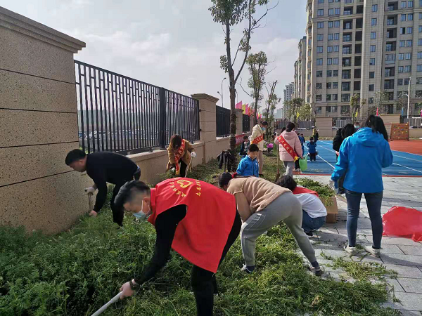 参加活动的有社区志愿者、老师、小冤家和先生家长共20余人,每个人各司其职,男同志担任肃清杂草开辟新土地,女同志和小冤家们担任清算搬运杂草,忙得不亦乐乎。经过一个多小时的清算,终于整理好了,随后老师们拿来花种,小冤家和志愿者们在本人开垦的土地上播散花种,给花籽浇水,期盼它快快长大。