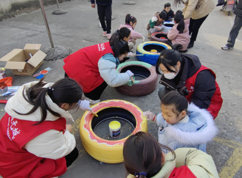 活动当天,幼儿园的小冤家们在老师的带领上去到了燃料公司宿舍,社区工作人员和志愿者早早地在空地上摆放着废弃的轮胎、油漆、刷子等物品。小冤家们两两一组围绕着轮胎手里拿着刷子开始发挥本人天马行空的想象力,在小冤家创作的同时,社区的垃圾分类讲解员向小冤家们引见了轮胎是属于可回收垃圾,油漆是属于有害垃圾等,让孩子们在游戏中轻松掌握分类技巧,让环保的种子深深地扎根心中。