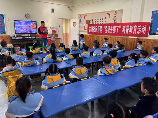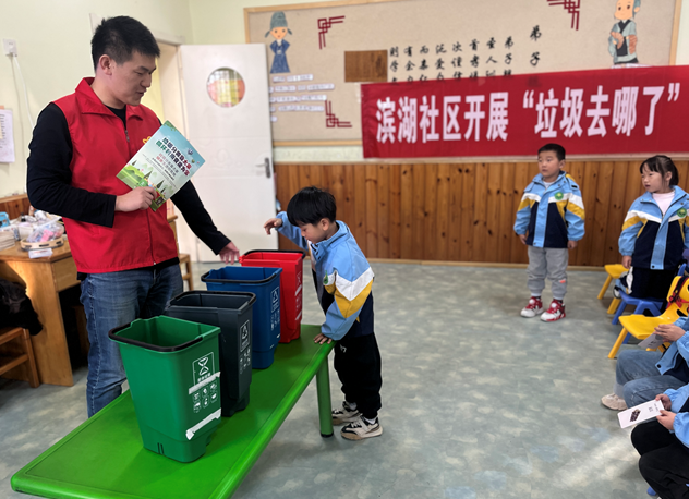 为呼应有为市垃圾分类宣传教育,从小培育青少年垃圾分类看法,柯┒船圾分类知识。2023年11月21日星期二下午,滨湖社区前往香榭丽院幼儿园开展“垃圾去哪了”科普教育活动。