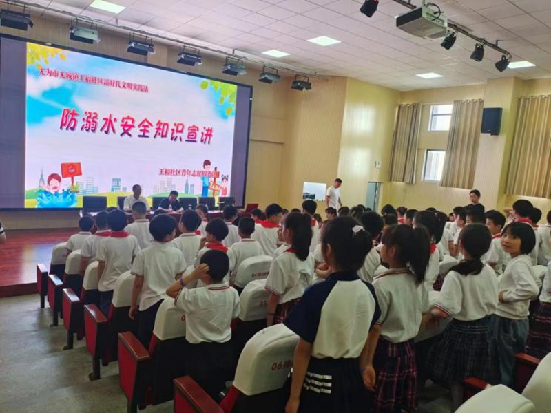 防溺水教育,守护未成年人安全。王福社区开展防溺水安全知识宣讲活动,经过播放视频、列举真实案例、互动问答等方式,让孩子们明白了溺水的严重后果。同时,还就如何防溺水、自救、施救、游泳留意事项等相关安全知识进行了详细讲解,现场教授防溺水的相关知识和技能,加强未成年人的安全看法和自我保护看法,进步避险防灾和自救才能,严防溺水身亡事故的发生。