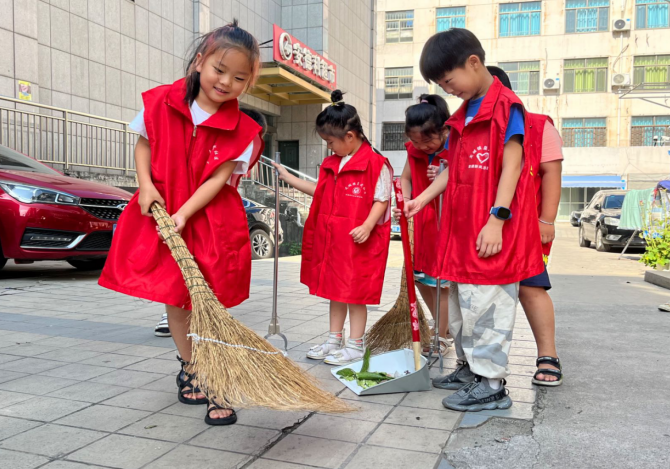 文明理论 “童”整治。经过户外理论活动,巩固了课堂知识。志愿者带着幼儿园的小冤家积极投入到小区环境卫生整治举动中。每一名小志愿者分工明确互相协助,有人拿着扫帚、撮箕,有人打扫垃圾、落叶,拾捡绿化带中的烟蒂、纸屑……他们个个干劲十足,经过一番努力,小区环境焕然一新。